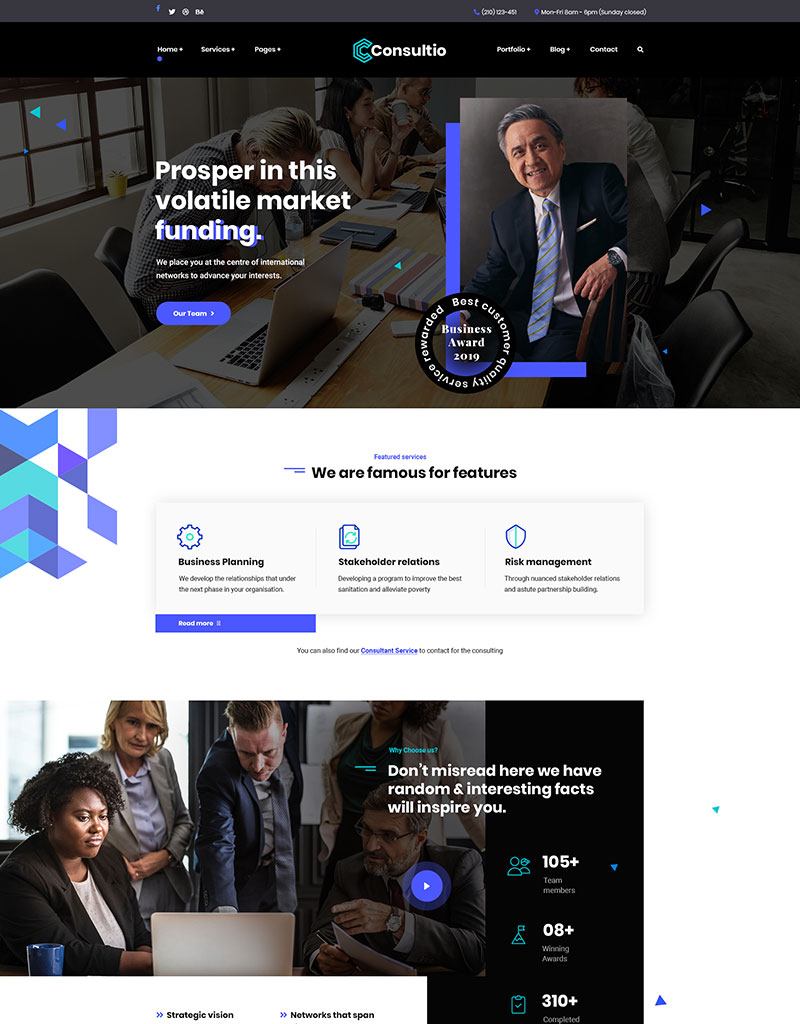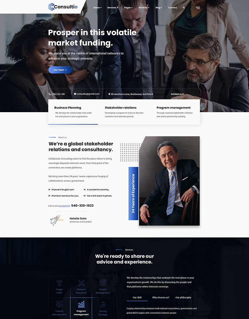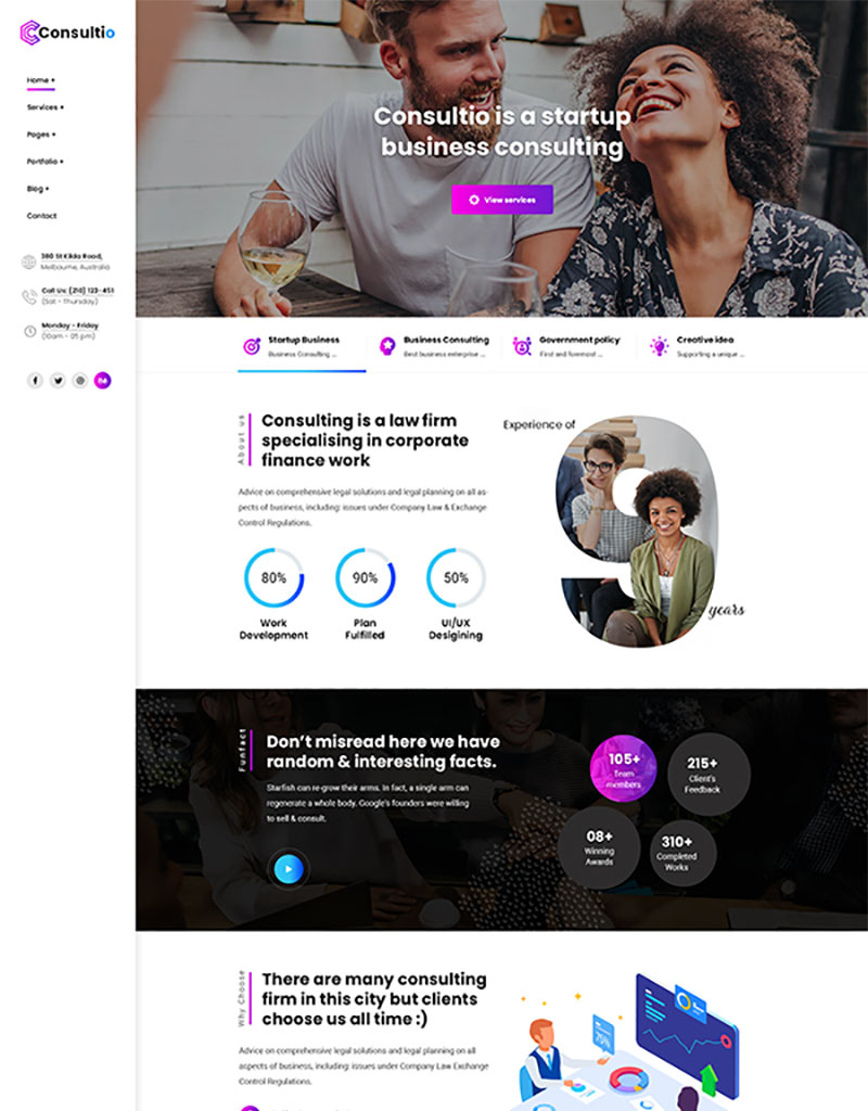 Consultio is a Consulting, Finance & Business Theme. It is a clean and modern Business design. You can use it for any kind website like consultancy, Adviser, Business, Consultant, Corporate, Finance, Financiall.